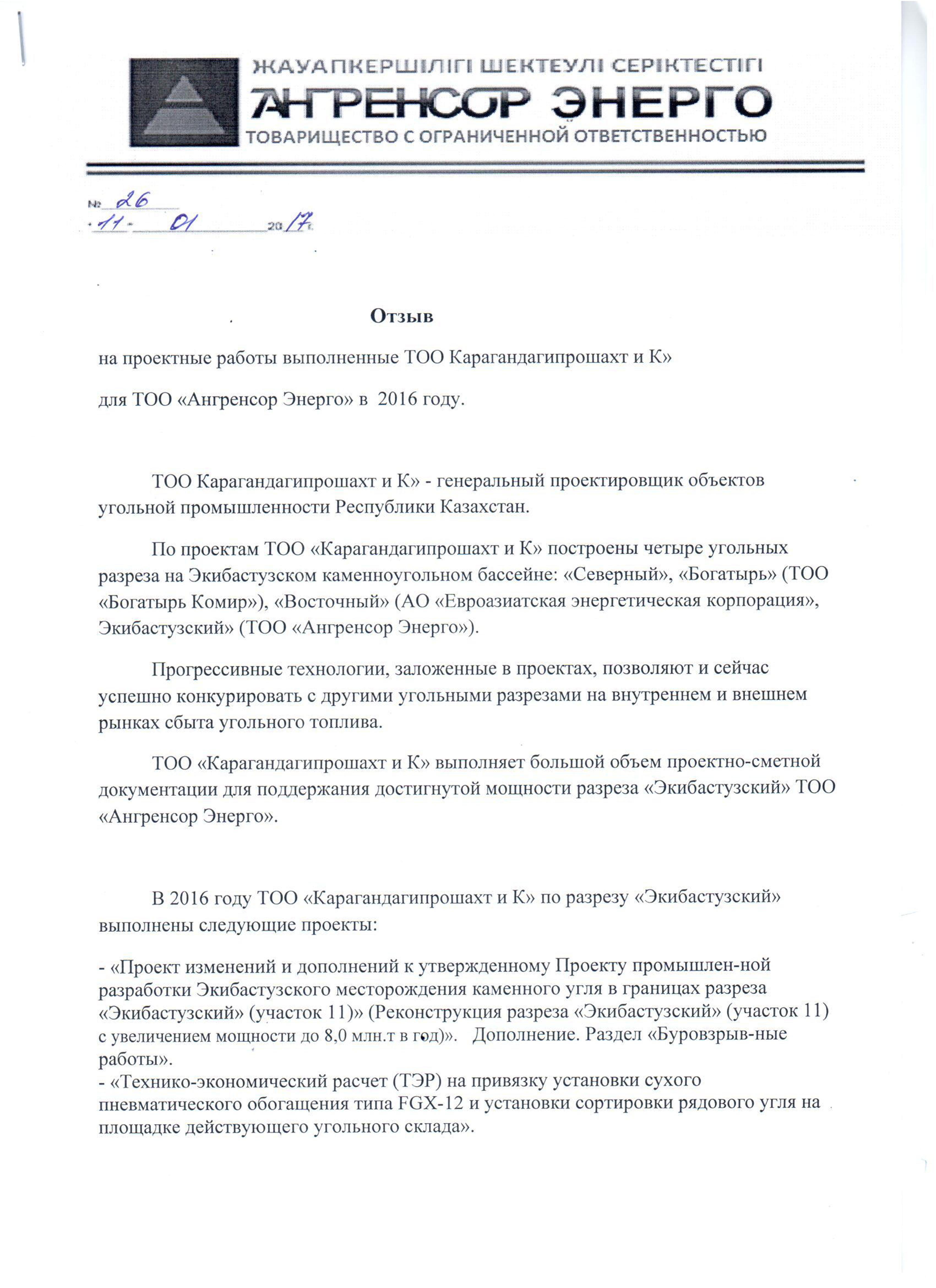 ТОО "Ангренсор Энерго" 2017 г.