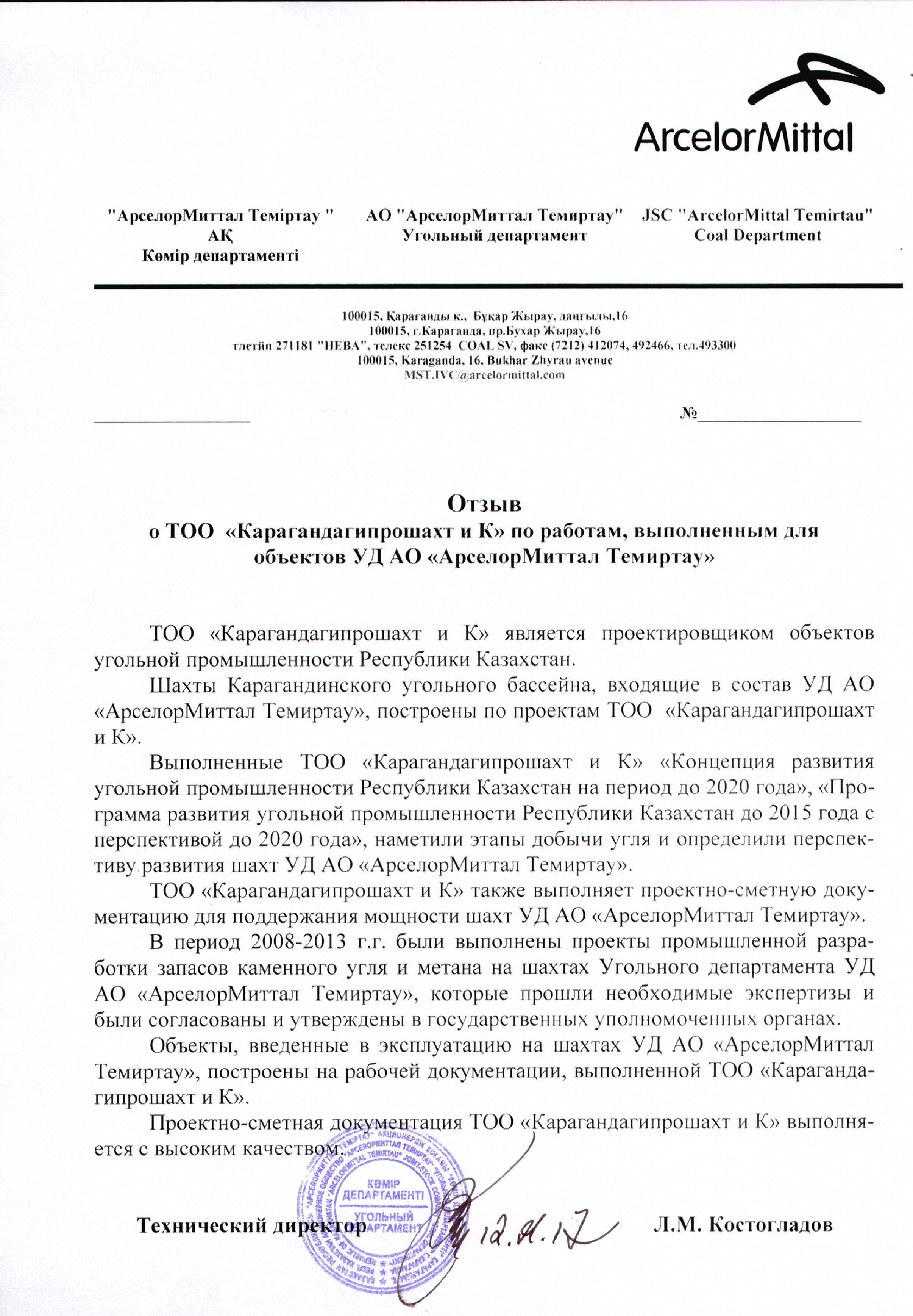 АО "АрселорМиттал Темиртау" 2017г.