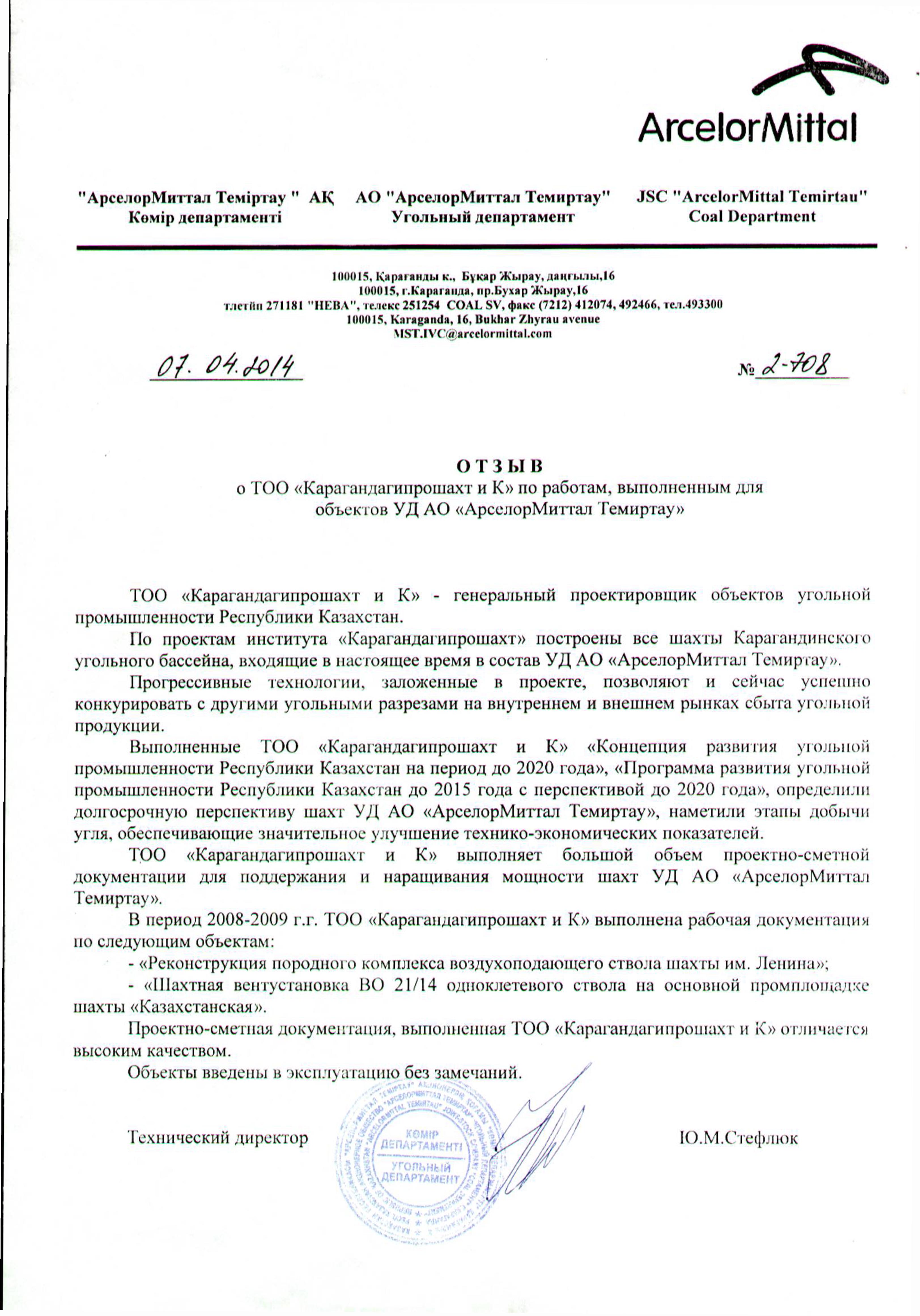 АО "АрселорМиттал Темиртау" 2014г.