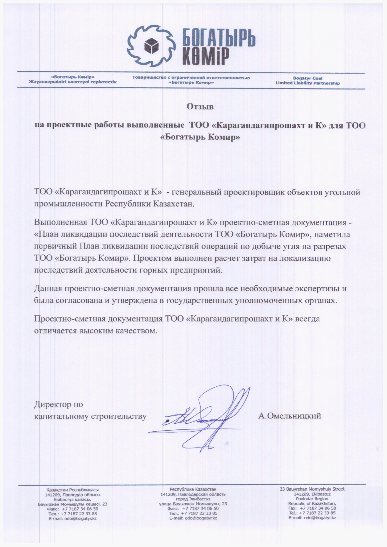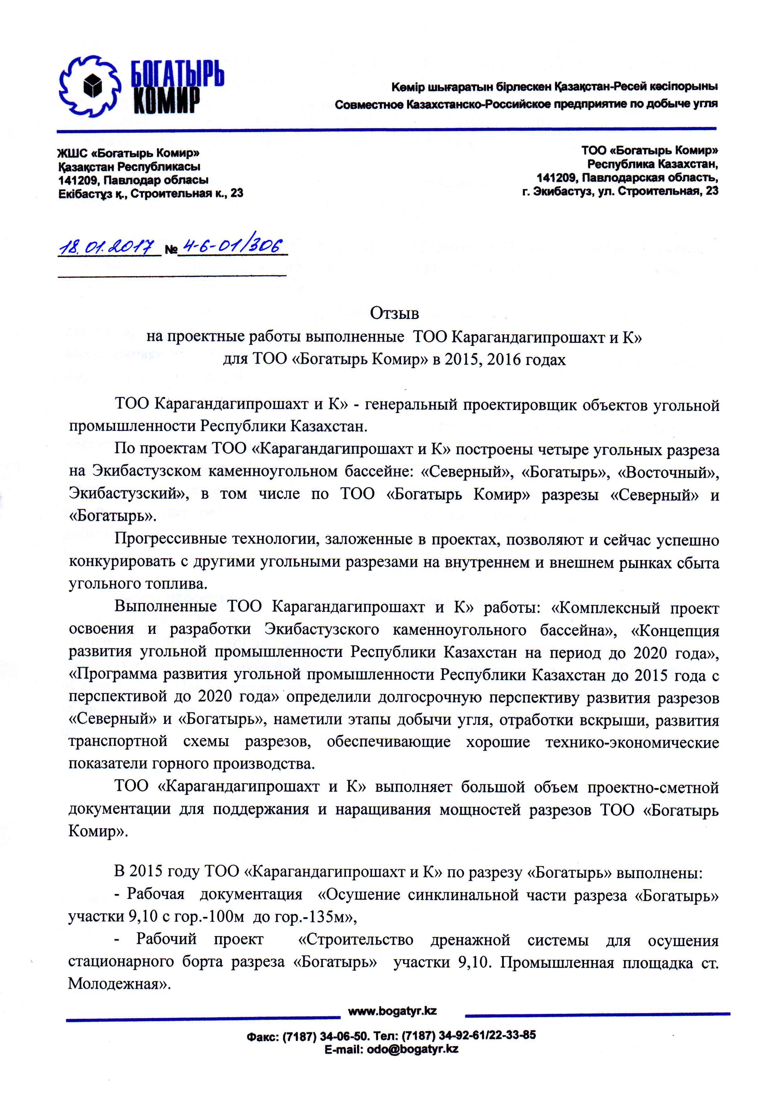 ТОО "Богатырь Комир" 2017г.