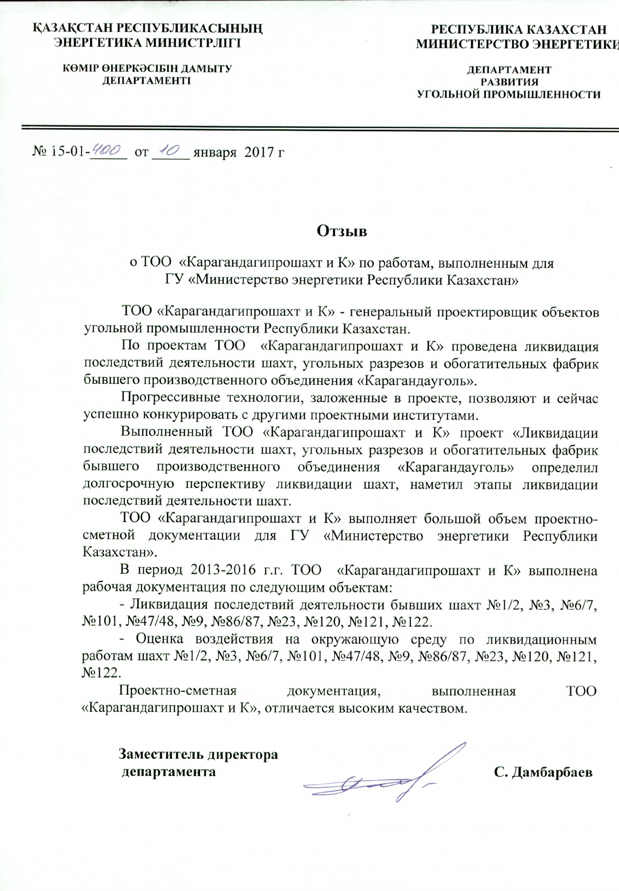 Министерство Энергетики РК 2017г.