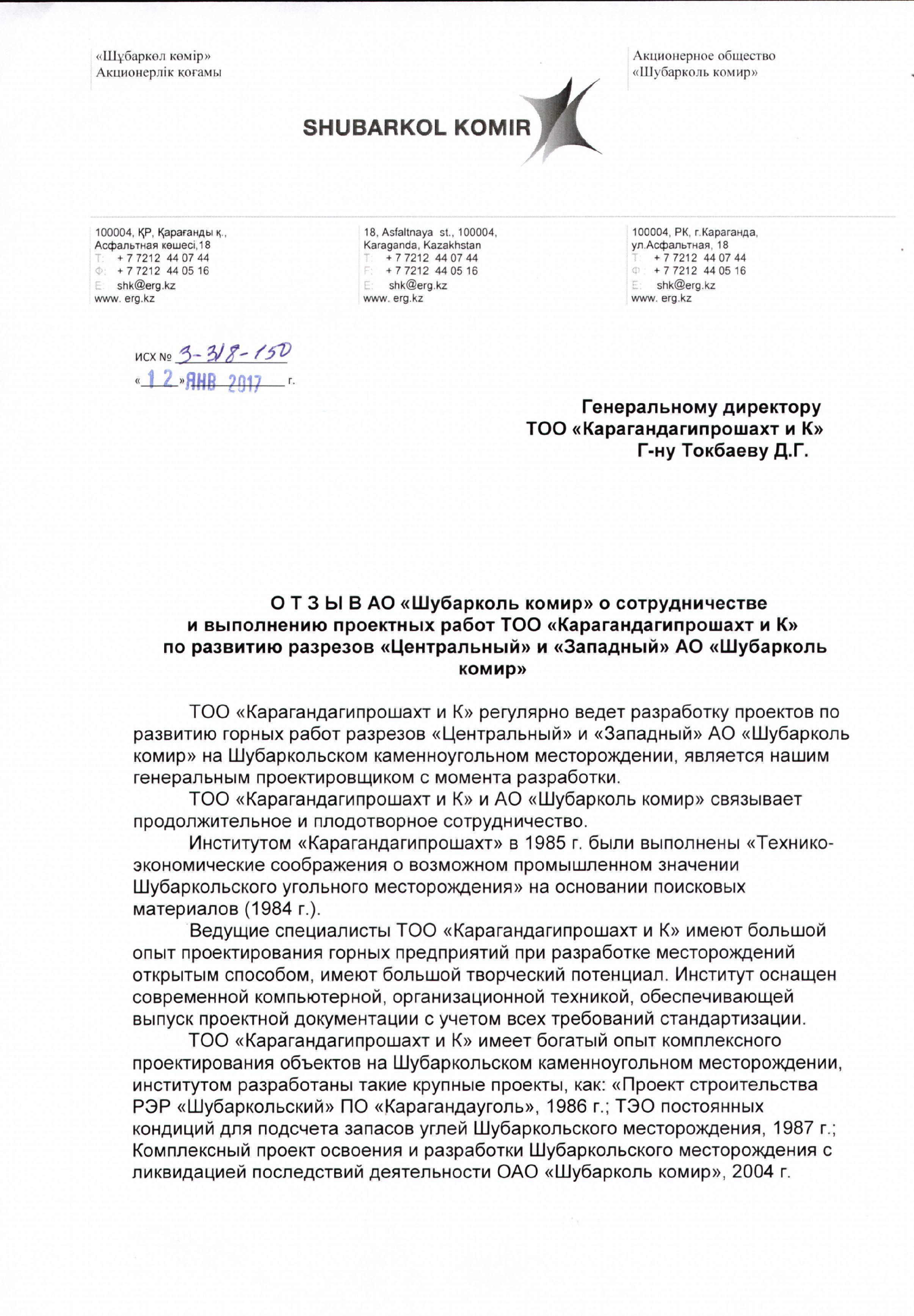 АО "Шубарколь комир" 2017г.