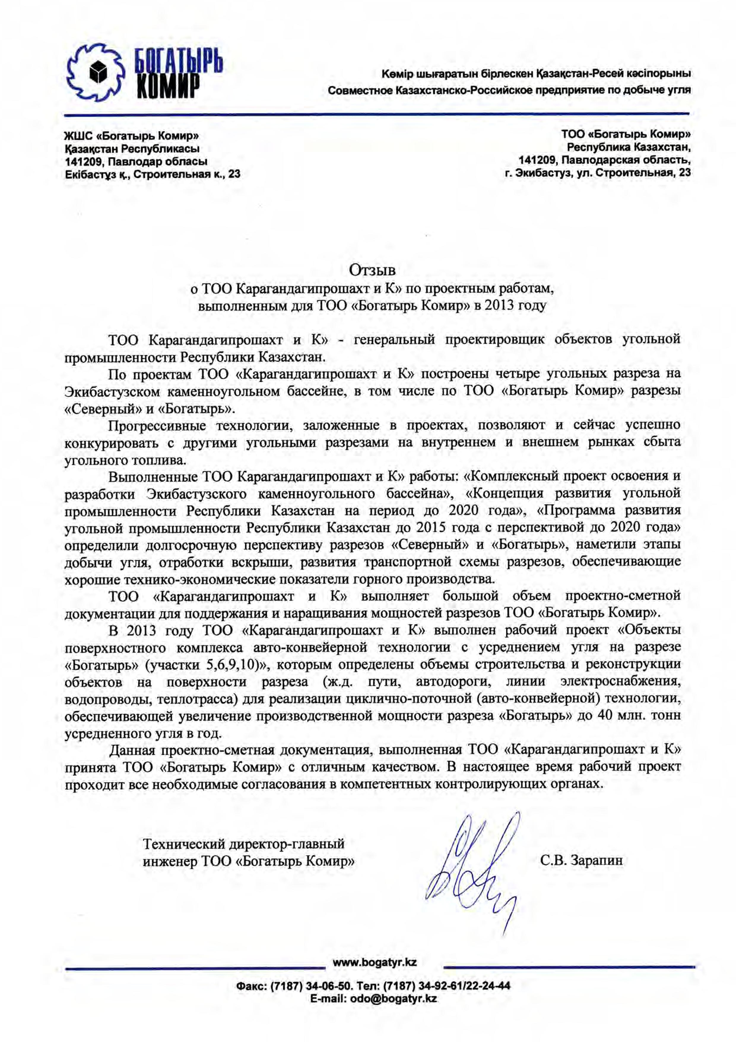 ТОО "Богатырь Комир" 2013г.